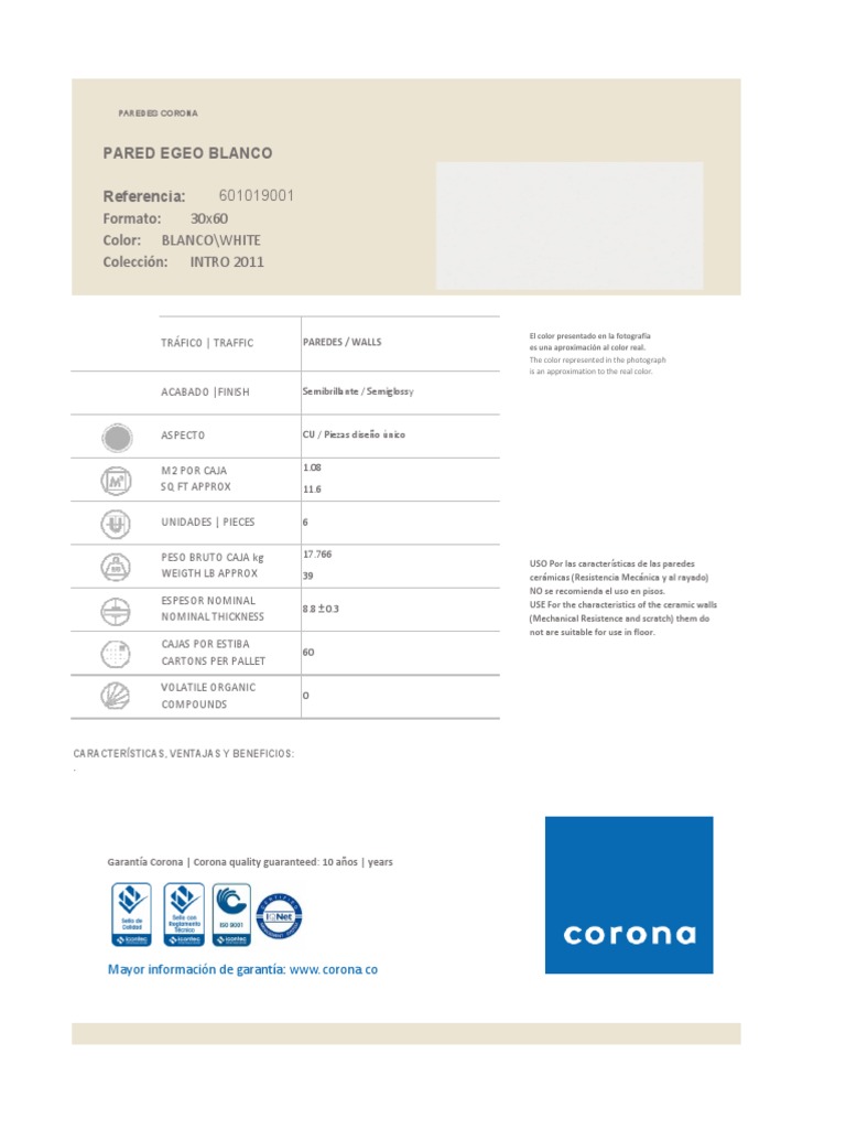 Garantía Corona | Corona quality guaranteed: 10 años | years
