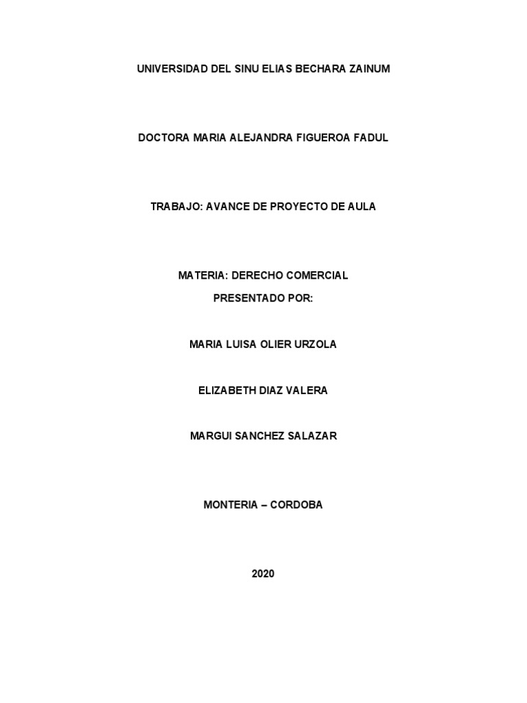 TRABAJO: AVANCE DE PROYECTO DE AULA
