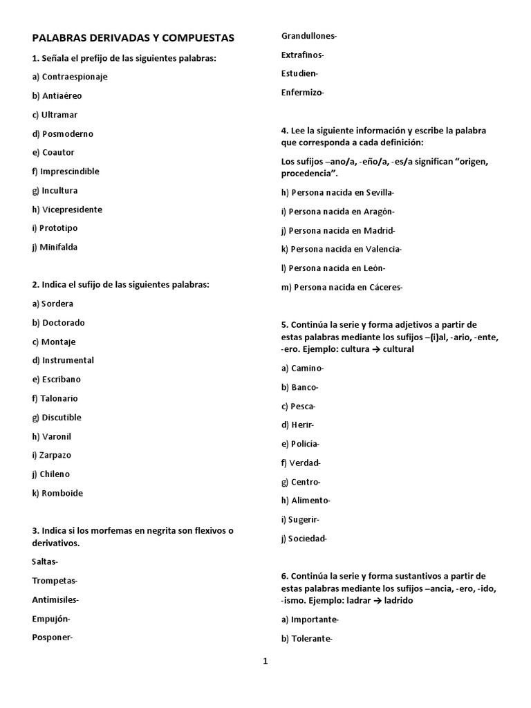 2. Indica el sufijo de las siguientes palabras: m) Persona nacida en Cáceres-