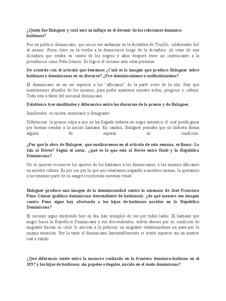 Establezca tres similitudes y diferencias entre los discursos de la prensa y de Balaguer.