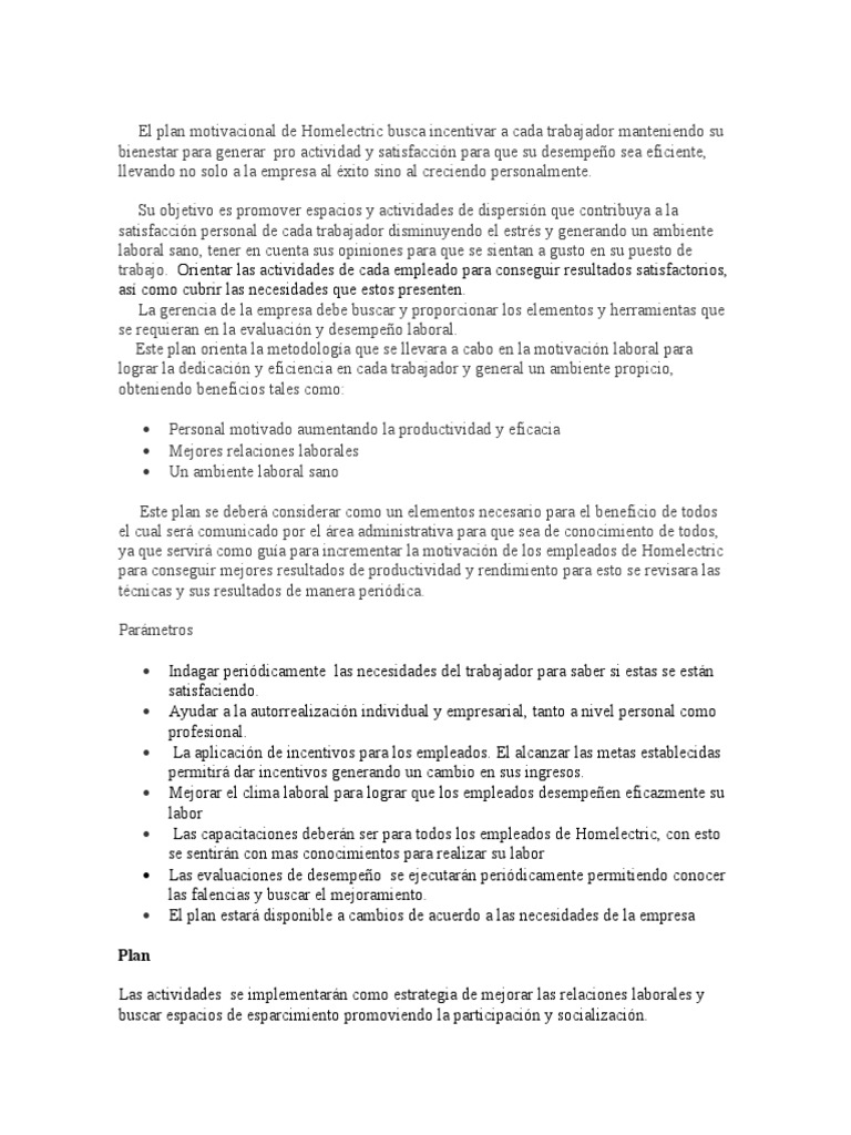 ya que servirá como guía para incrementar la motivación de los empleados de Homelectric
