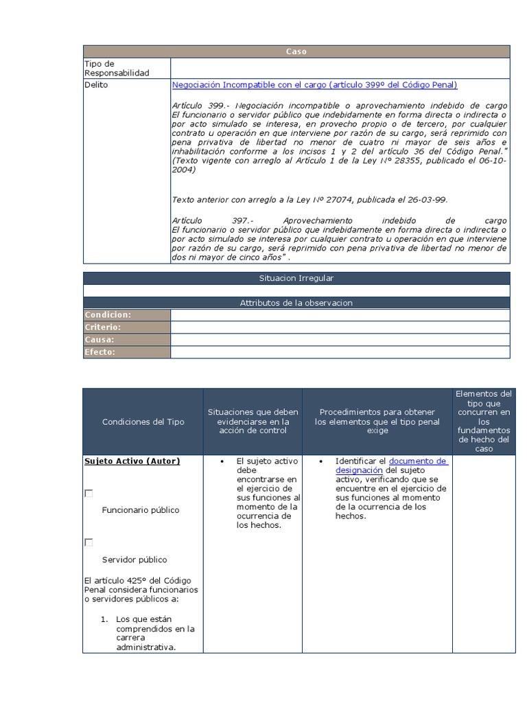 Delito Negociación Incompatible con el cargo (artículo 399º del Código Penal)