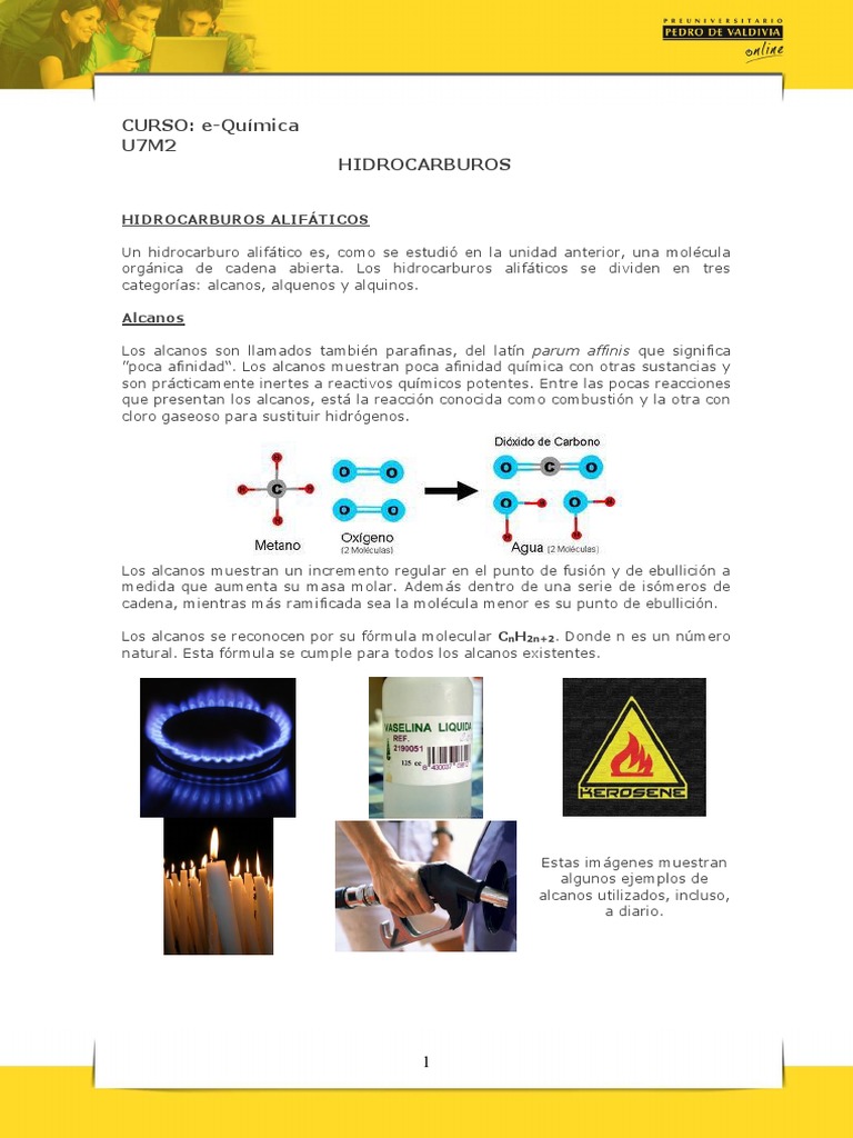 Un hidrocarburo alifático es, como se estudió en la unidad anterior, una molécula