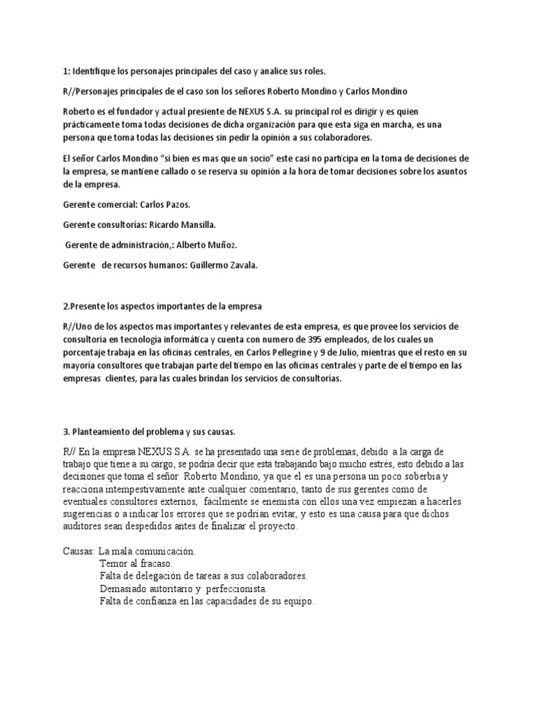 R// En la empresa NEXUS S.A. se ha presentado una serie de problemas, debido a la carga de
