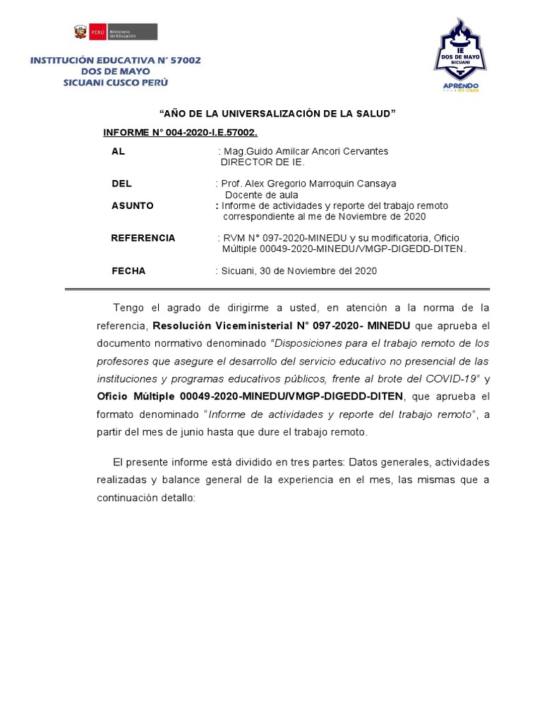 FECHA : Sicuani, 30 de Noviembre del 2020