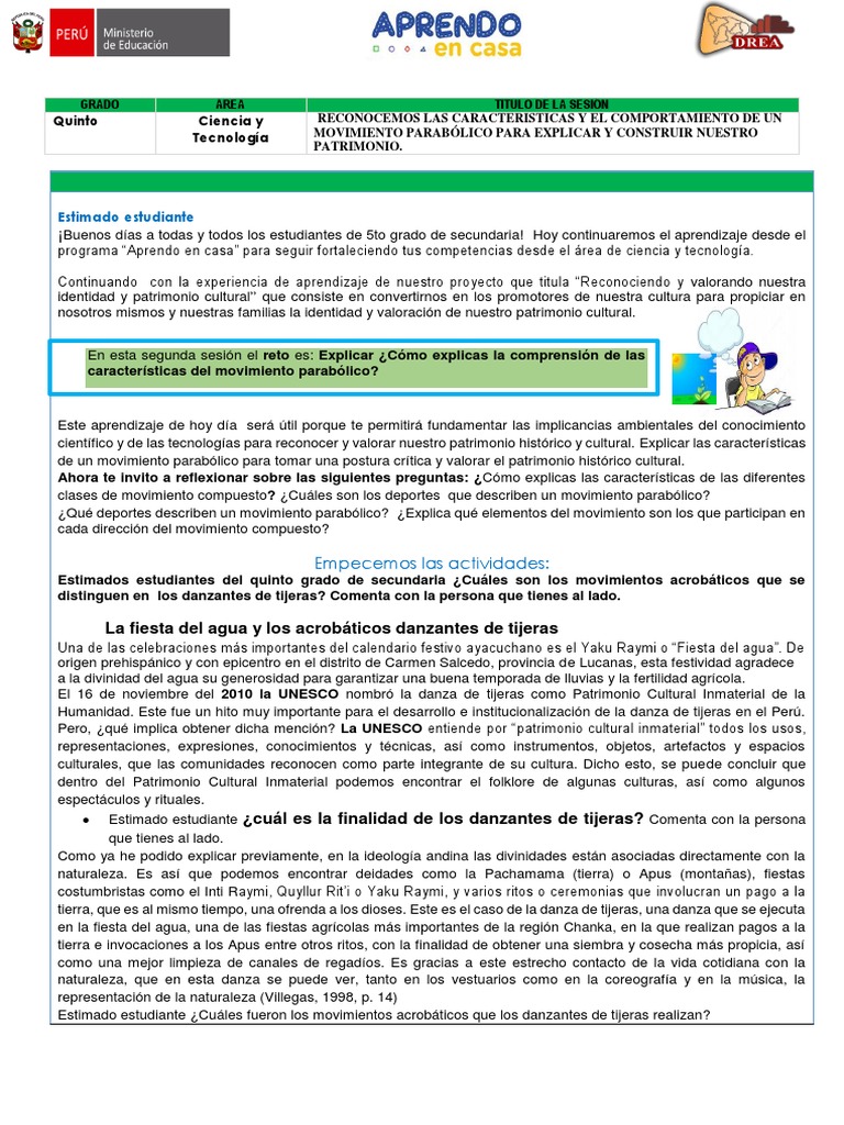 ¡Buenos días a todas y todos los estudiantes de 5to grado de secundaria! Hoy continuaremos el aprendizaje desde el