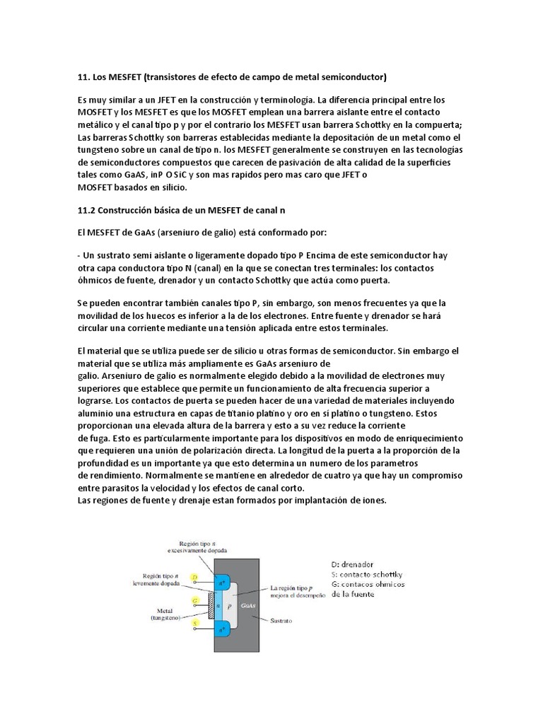 tungsteno sobre un canal de tipo n. los MESFET generalmente se construyen en las tecnologías