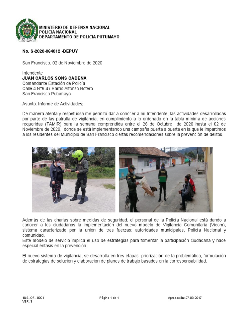 De manera atenta y respetuosa me permito dar a conocer a mi Intendente, las actividades desarrolladas