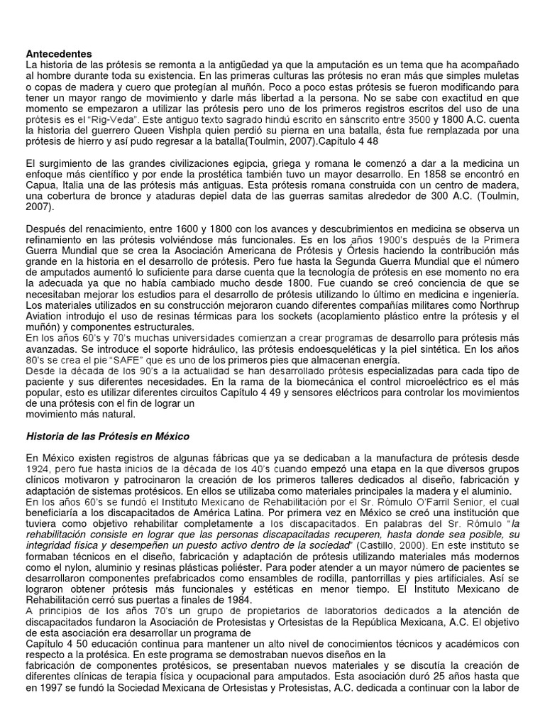 al hombre durante toda su existencia. En las primeras culturas las prótesis no eran más que simples muletas