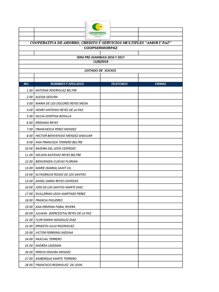 NO. NOMBRES Y APELLIDOS TELEFONOS FIRMAS
