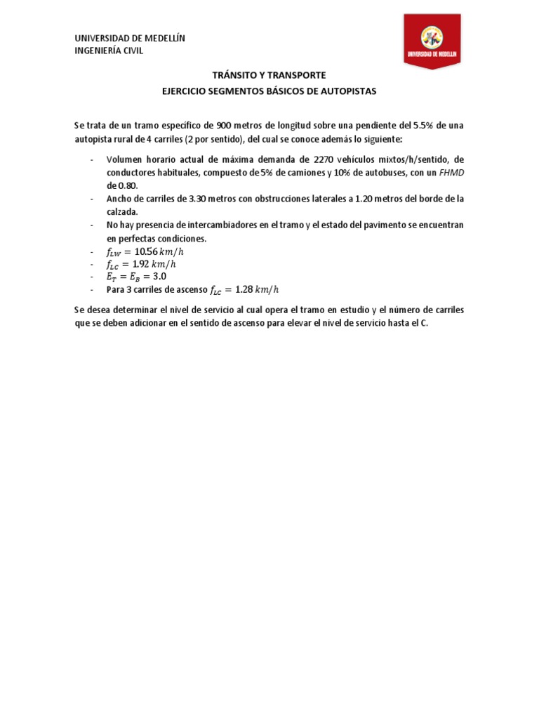 EJERCICIO SEGMENTOS BÁSICOS DE AUTOPISTAS