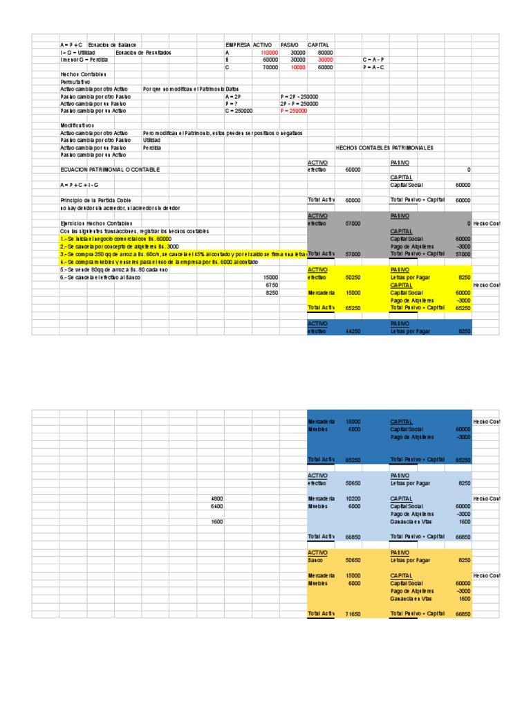 Principio de la Partida Doble Total Activ 60000 Total Pasivo + Capital 60000