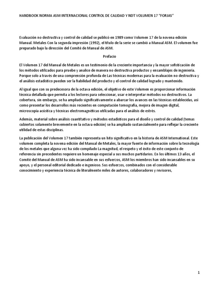 HANDBOOK NORMA ASM INTERNACIONAL CONTROL DE CALIDAD Y NDT VOLUMEN 17 “FORJAS”