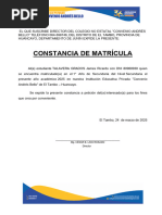 estudiante(a) hasta el día miércoles 03 de diciembre del 2020 a cada docente de grado actual, SE CONSIDERARÁ