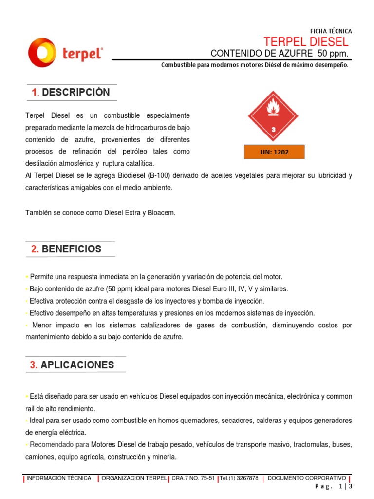 INFORMACIÓN TÉCNICA ORGANIZACIÓN TERPEL CRA.7 NO. 75-51 Tel.(1) 3267878 DOCUMENTO CORPORATIVO