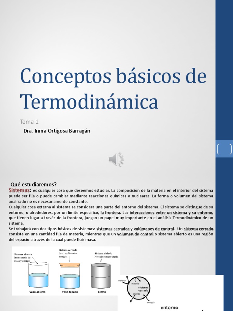 Sistemas: es cualquier cosa que deseemos estudiar. La composición de la materia en el interior del sistema