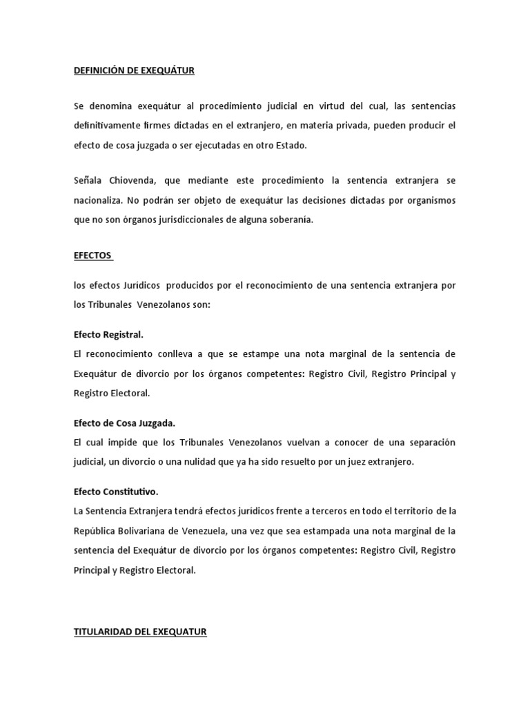 Se denomina exequátur al procedimiento judicial en virtud del cual, las sentencias