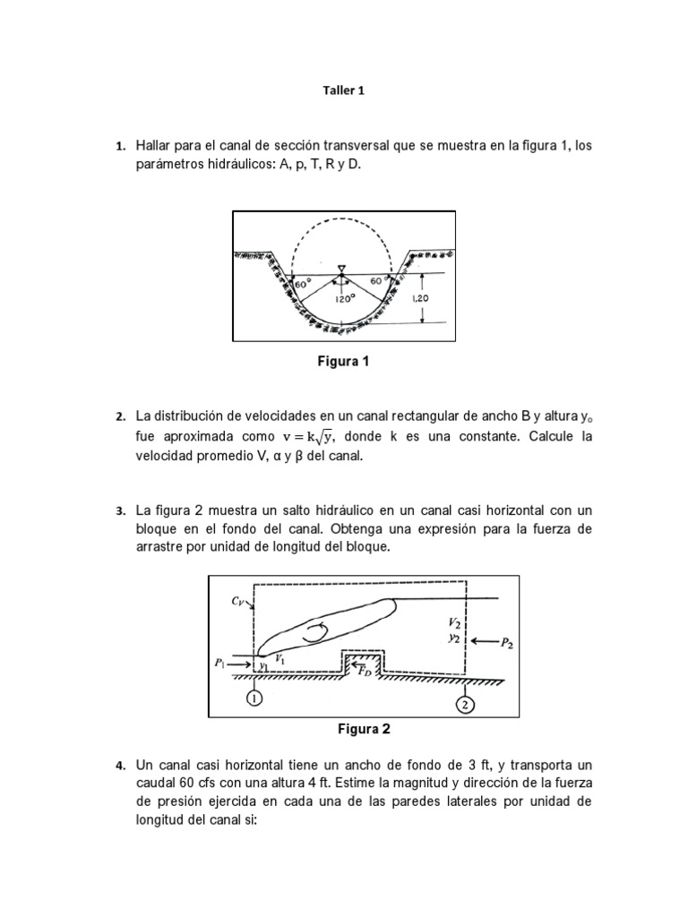 1. Hallar para el canal de sección transversal que se muestra en la figura 1, los