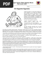 Un día. El Gigante regresó, no le gustó ver a los niños jugando en el jardín y dijo con voz fuerte: