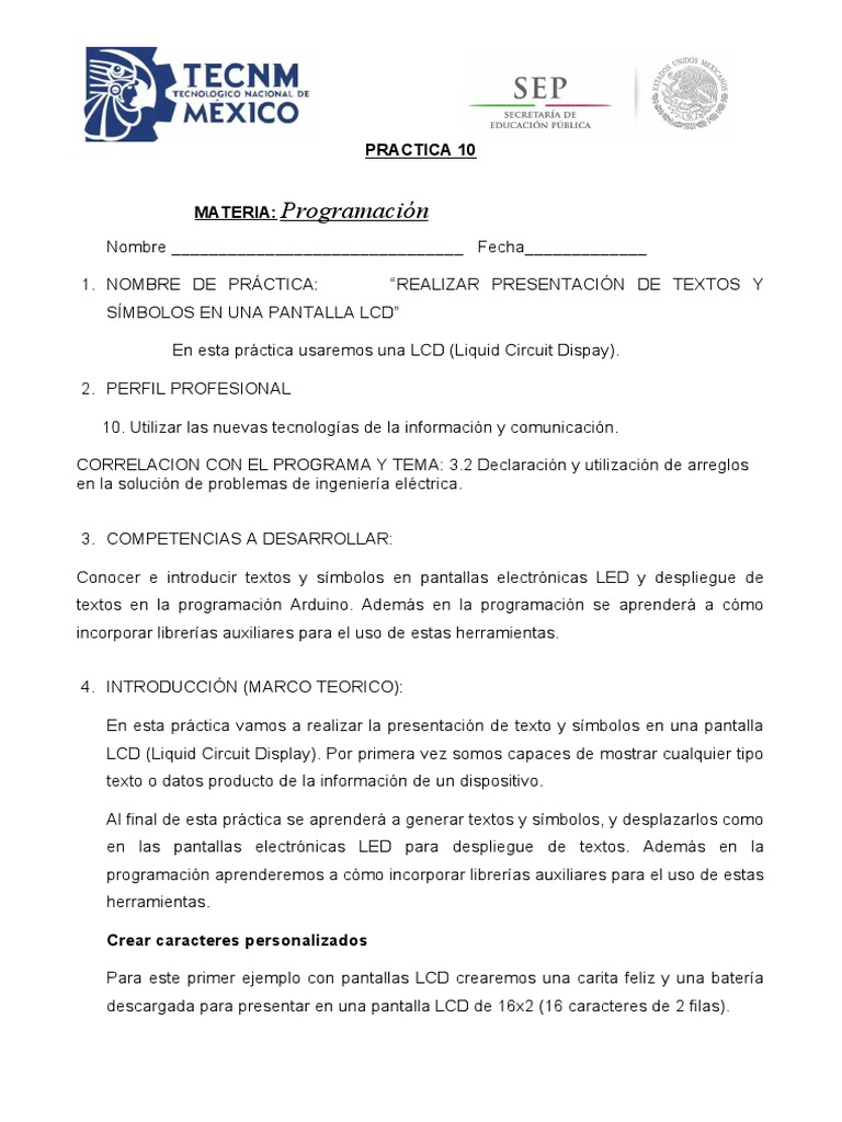 En esta práctica vamos a realizar la presentación de texto y símbolos en una pantalla