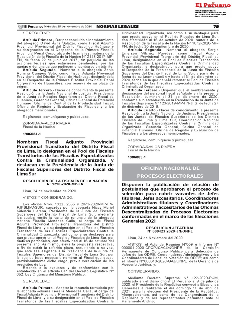 84 NORMAS LEGALES Miércoles 25 de noviembre de 2020 / El Peruano