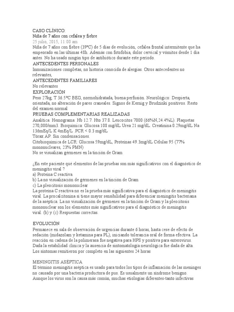 Niña de 7 años con fiebre (39ºC) de 5 días de evolución, cefalea frontal intermitente que ha