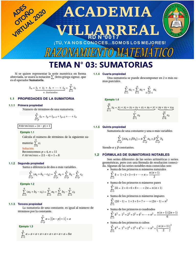 # t ér mi nos = (11 − 4) + 1 = 8 1.2 FÓRMULAS DE SUMATORIAS NOTABLES