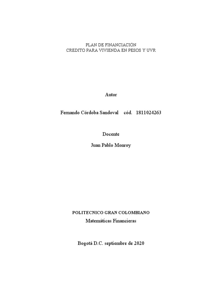 CREDITO PARA VIVIENDA EN PESOS Y UVR