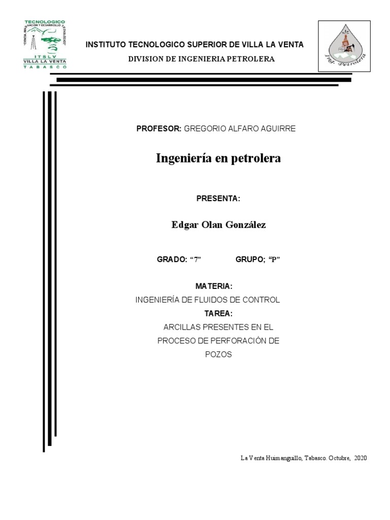 1.- Arcillas usadas en los fluidos de perforación al agregarse desde la superficie.