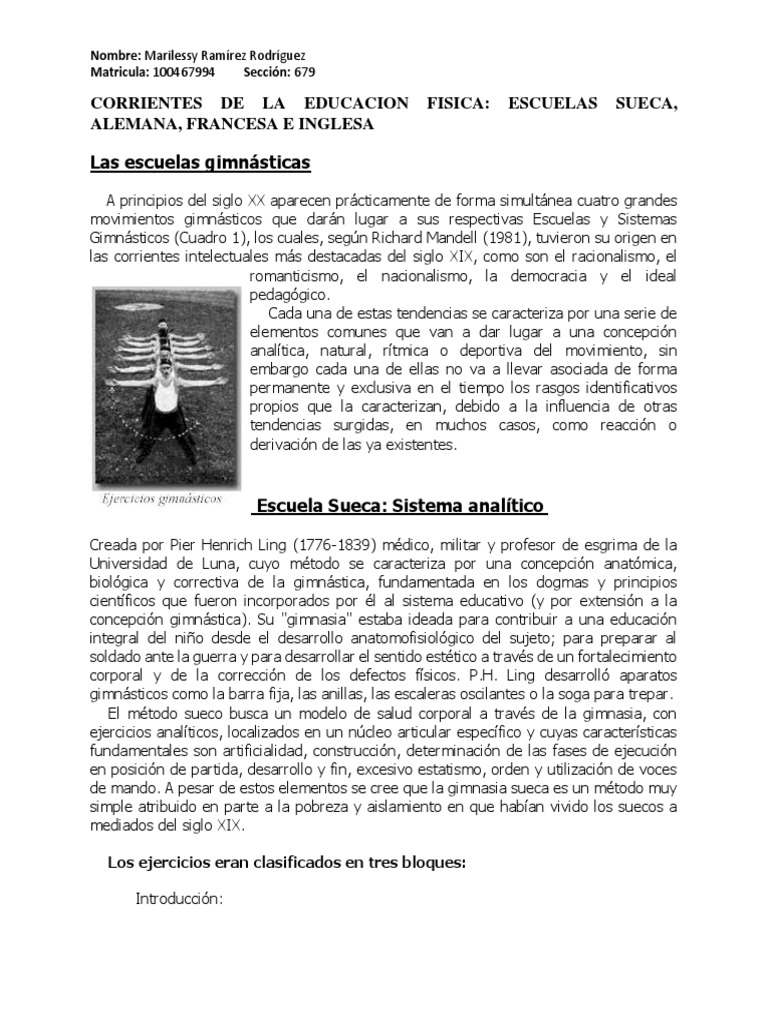 CORRIENTES DE LA EDUCACION FISICA: ESCUELAS SUECA,