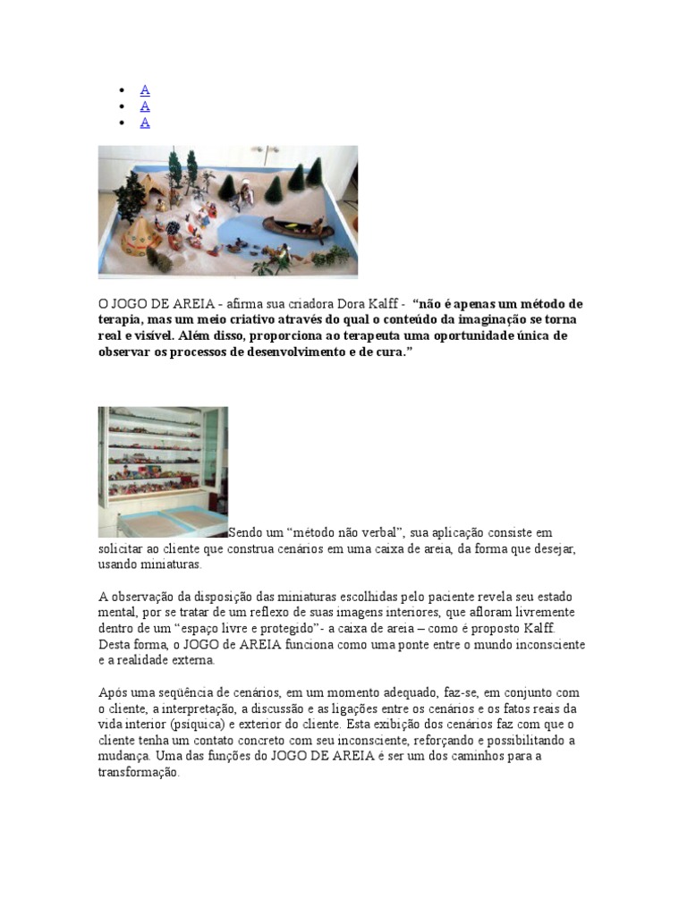 O JOGO DE AREIA - afirma sua criadora Dora Kalff - “não é apenas um método de
