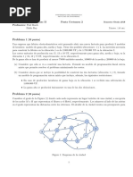 hasta los centros de distribución t y t', a lo largo de la red de transporte indicada en la figura,