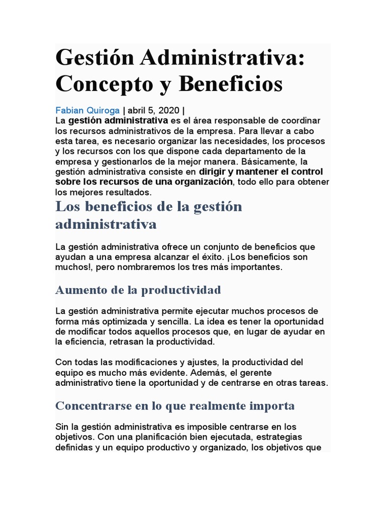administrativo tiene la oportunidad y de centrarse en otras tareas.