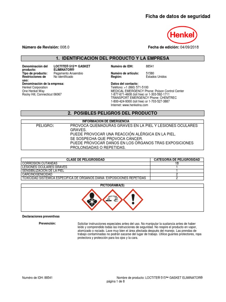 Henkel Corporation Teléfono: +1 (860) 571-5100