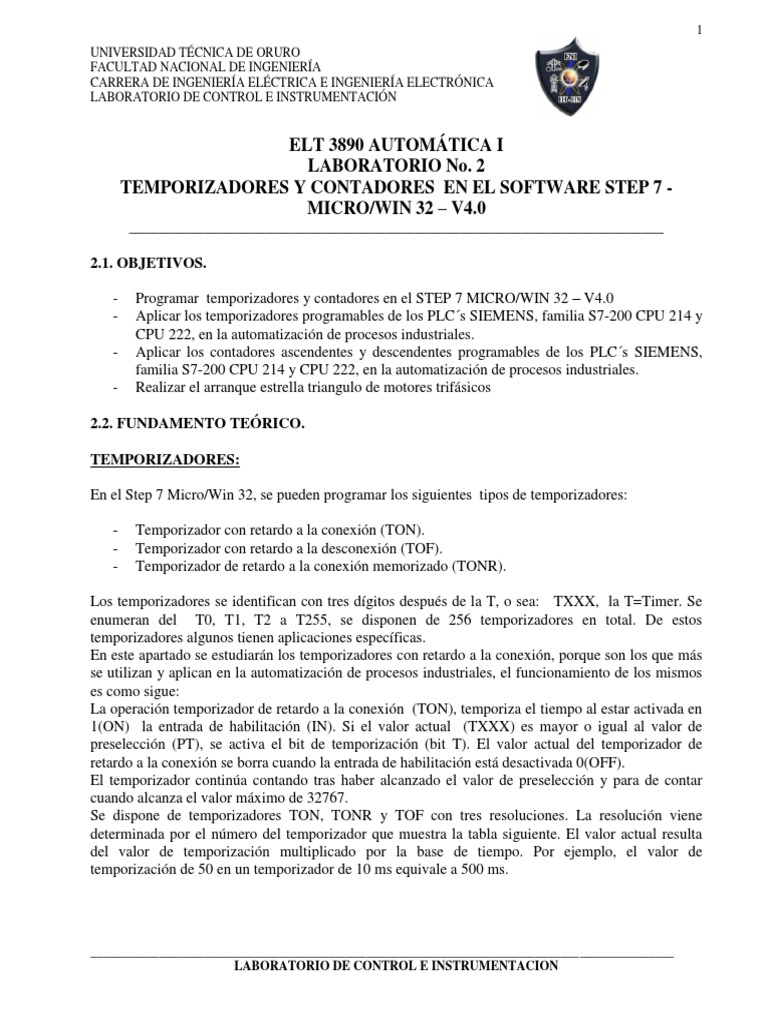 - Programar temporizadores y contadores en el STEP 7 MICRO/WIN 32 – V4.0