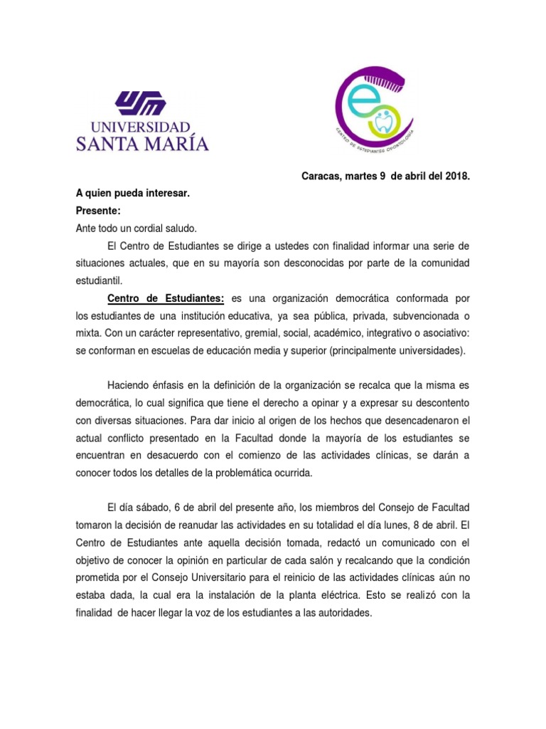 con los miembros de Consejo de Facultad, El Centro de Estudiantes da a conocer