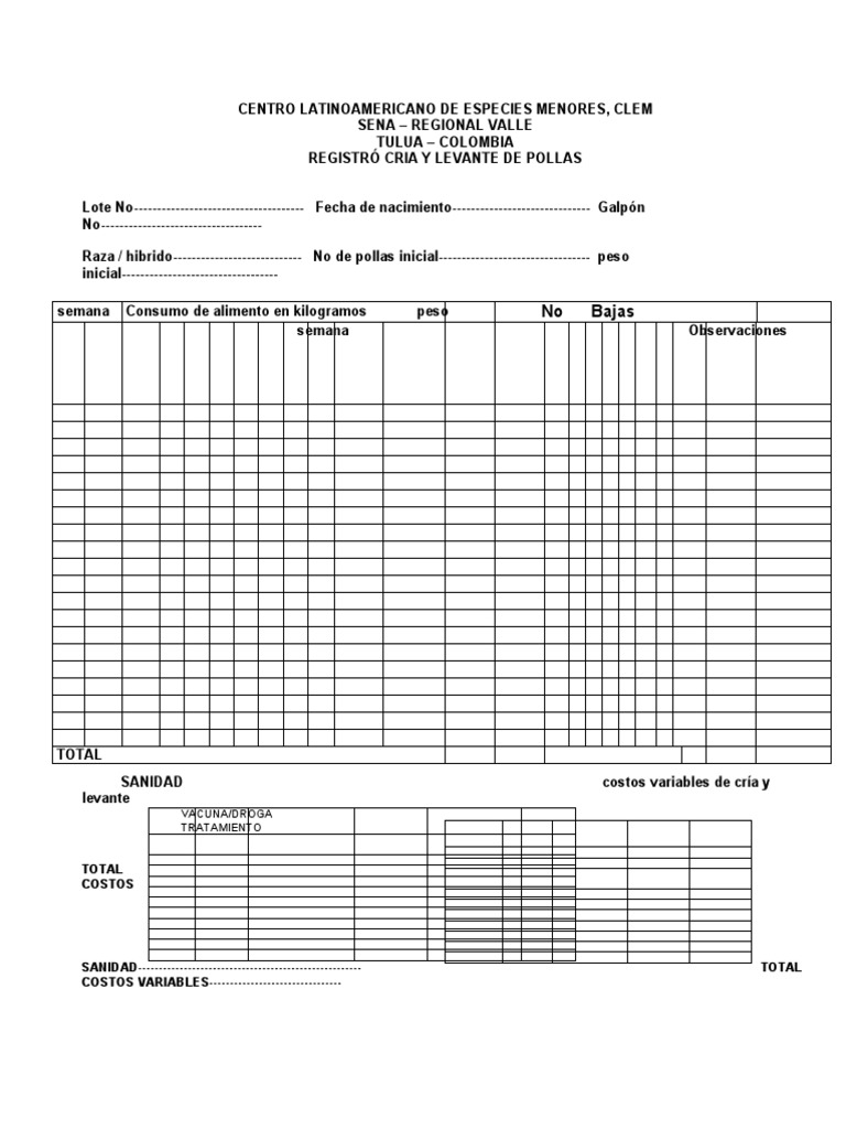 REGISTRÓ CRIA Y LEVANTE DE POLLAS