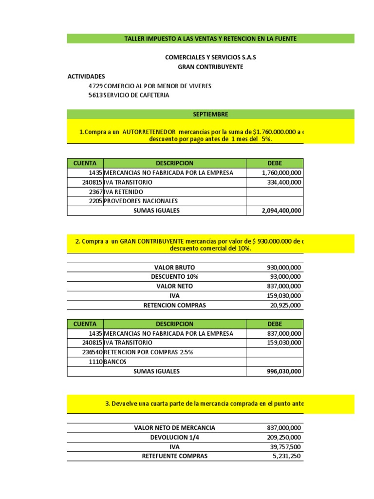 9. Vende a un GRAN CONTRIBUYENTE Y AUTORRETENEDOR mercancía por valor de $ 2.700.000.000.