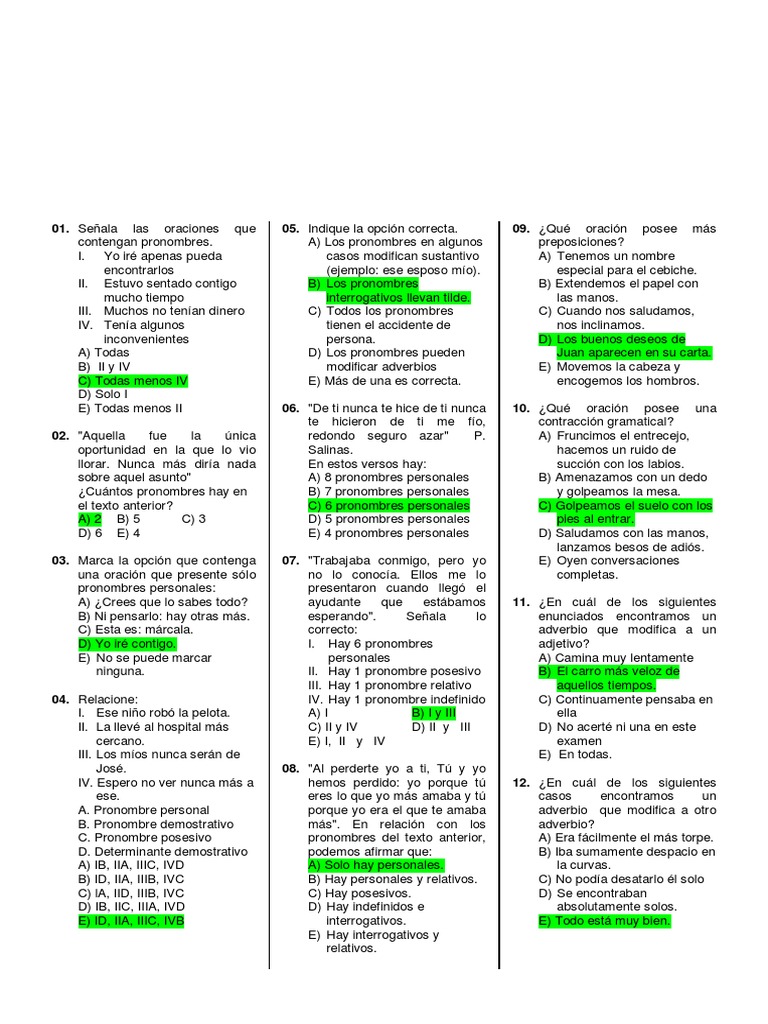 III. Muchos no tenían dinero C) Todos los pronombres C) Cuando nos saludamos,