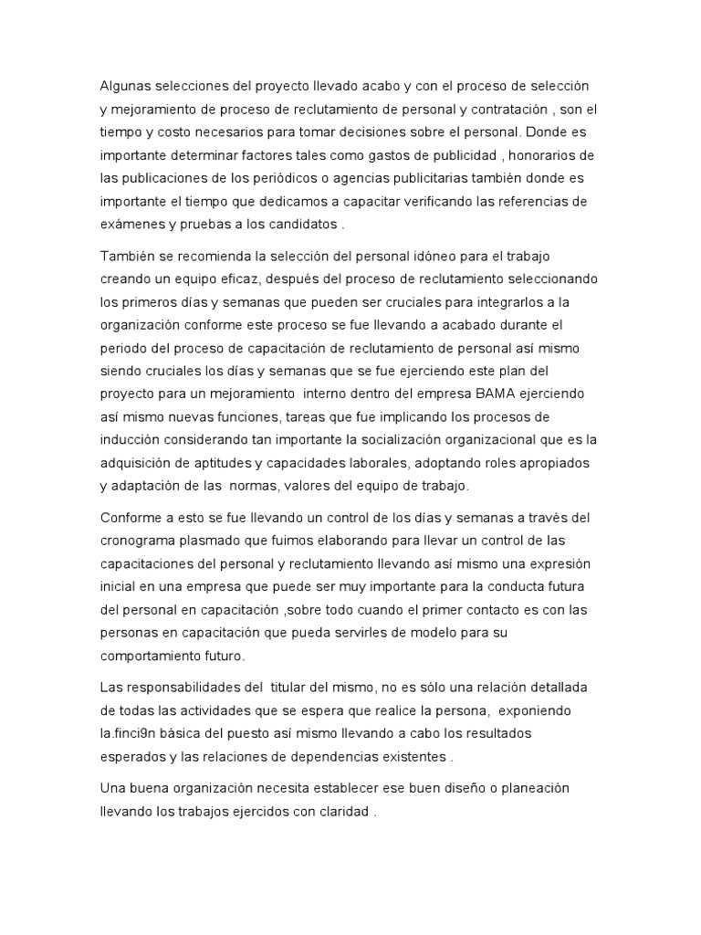 y mejoramiento de proceso de reclutamiento de personal y contratación , son el