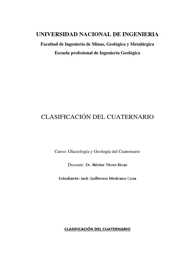 CLASIFICACIÓN DEL CUATERNARIO