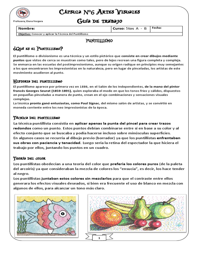 Objetivo: Conocer y aplicar la Técnica del Puntillismo
