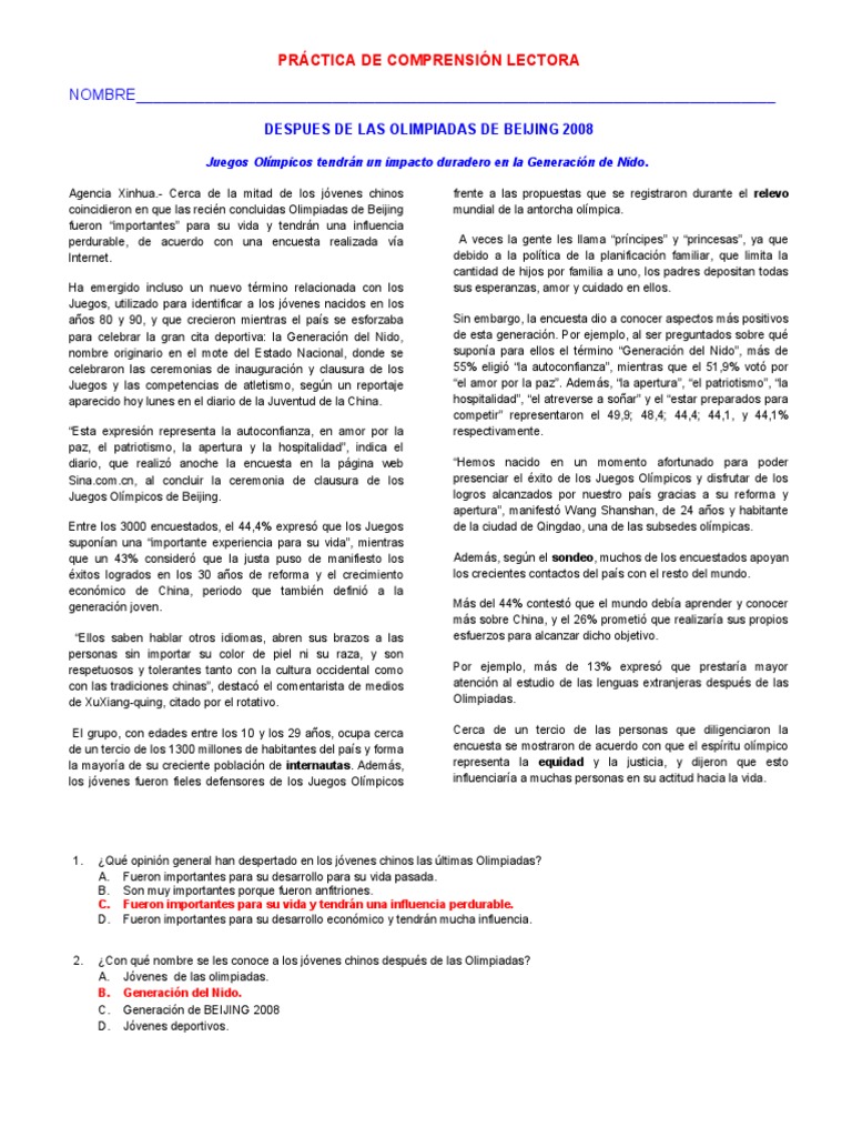 “importantes” lleva comillas porque… C. Los juegos Olímpicos de Beijing.