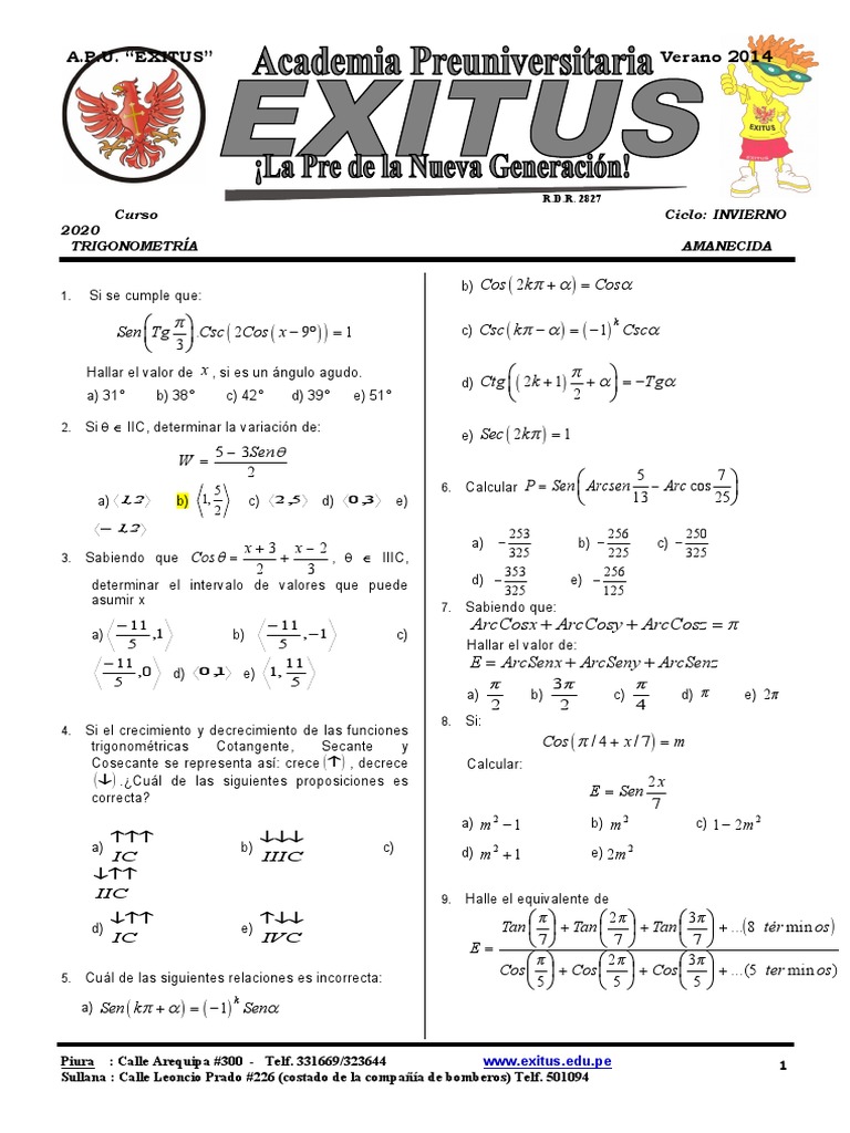 Piura : Calle Arequipa #300 - Telf. 331669/323644 www.exitus.edu.pe 1