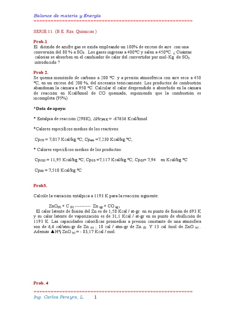 reactantes se cargan a 980 °C. Cuál será el calor de reacción si los productos salen a