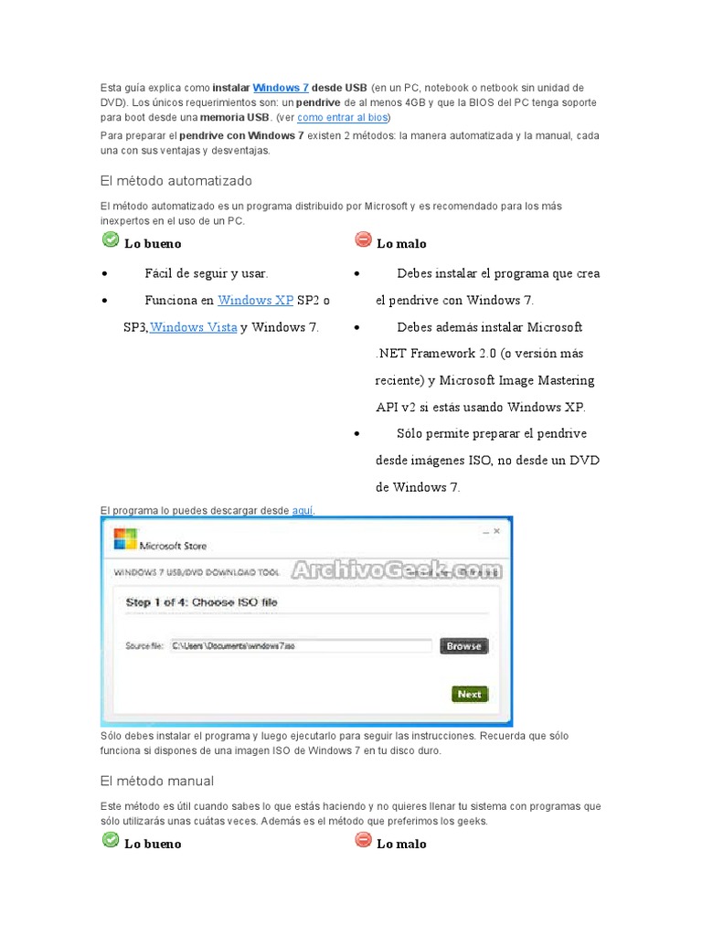 Para preparar el pendrive con Windows 7 existen 2 métodos: la manera automatizada y la manual, cada