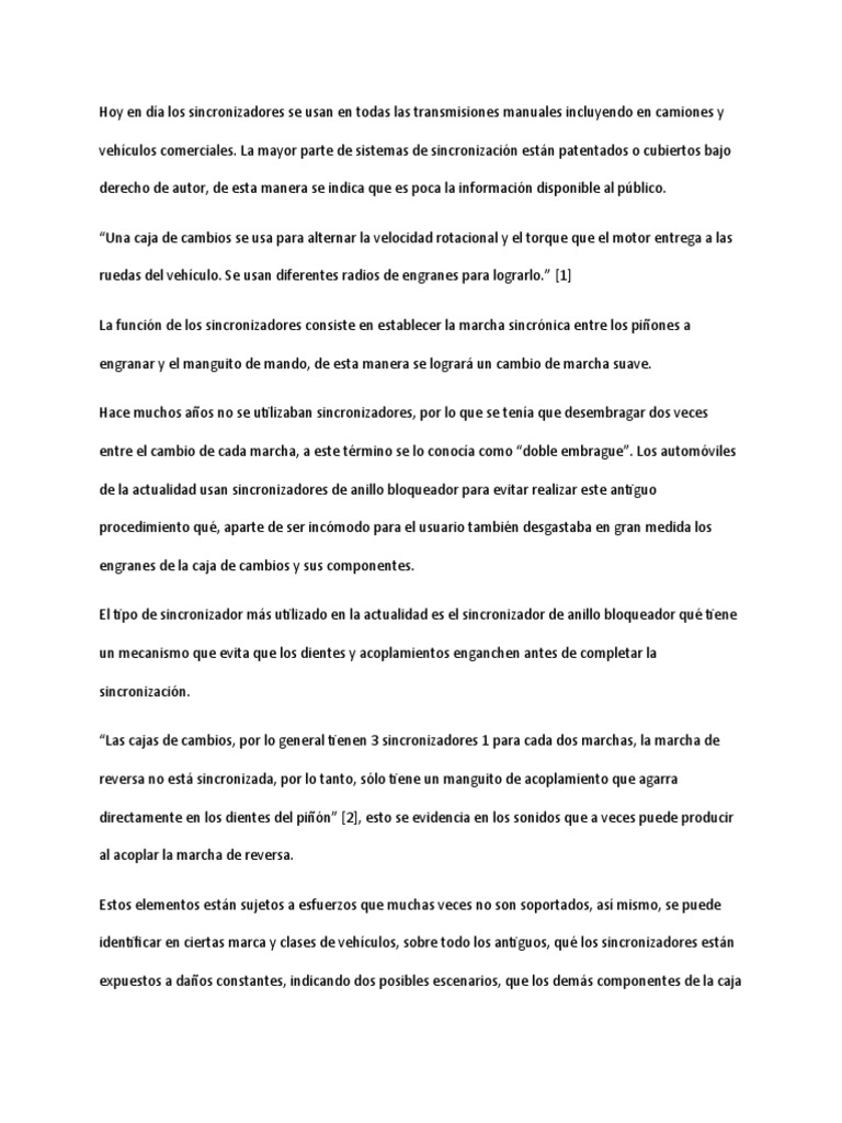 “Las cajas de cambios, por lo general tienen 3 sincronizadores 1 para cada dos marchas, la marcha de