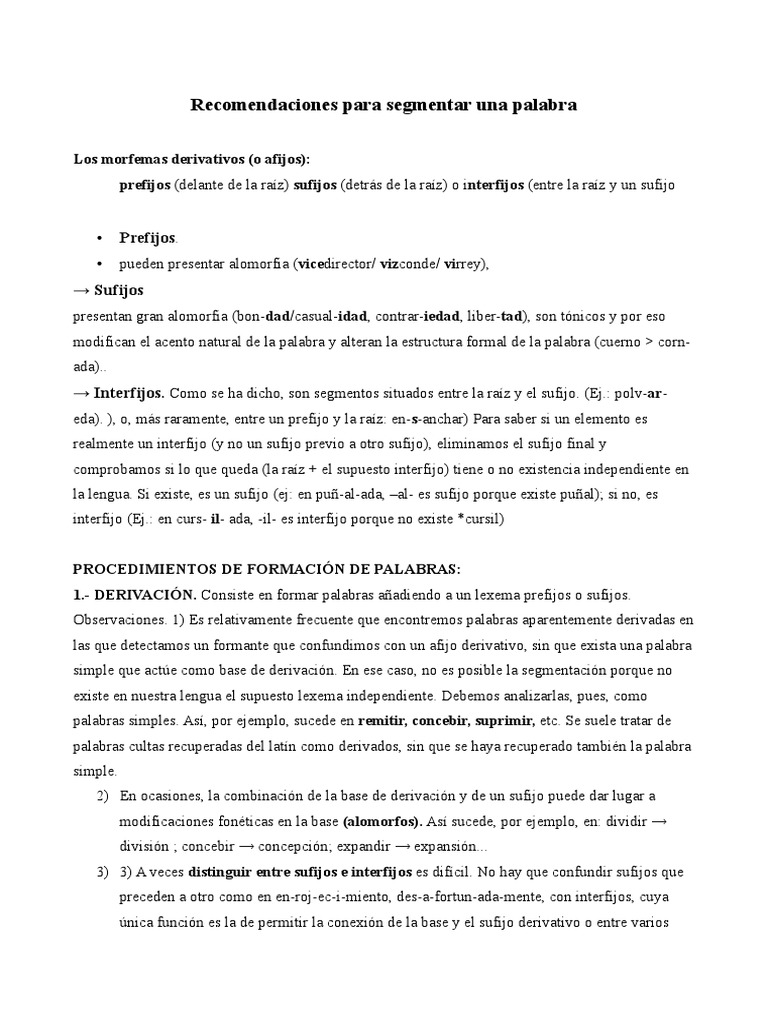Recomendaciones para segmentar una palabra