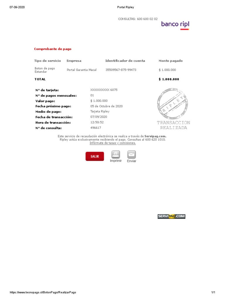 Ripley actúa exclusivamente recibiendo el pago. Consultas al 600 620 1010.