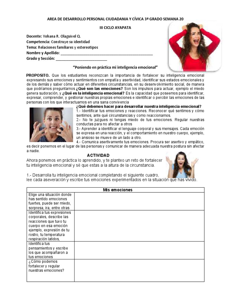 genera sudoración, y ¿Qué es la inteligencia emocional? Es la capacidad que poseemos para identificar,